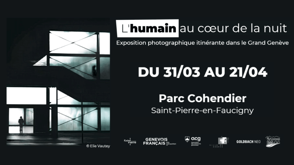 Mercredi 1 Avr. 2026 31 Mar. 21 Avr. 2026 Exposition Exposition « L’humain au cœur de la nuit » Saint-Pierre-en-Faucigny 10:00, 14:00