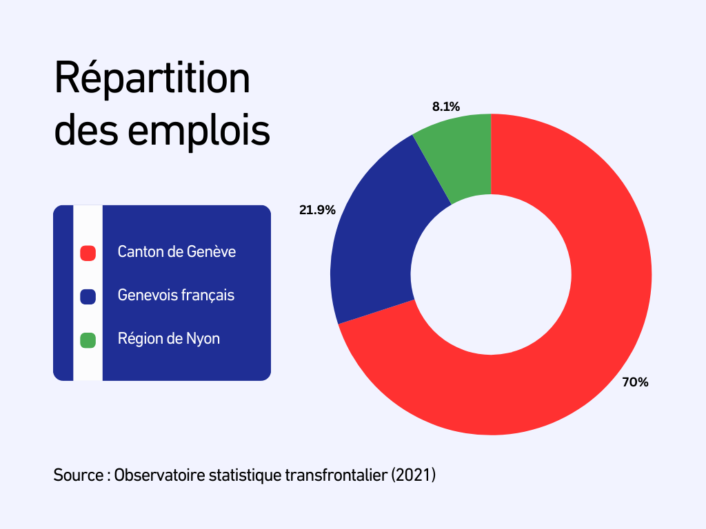 Genève concentre près de 70 % des emplois, principalement dans les villes et les zones d’activité.